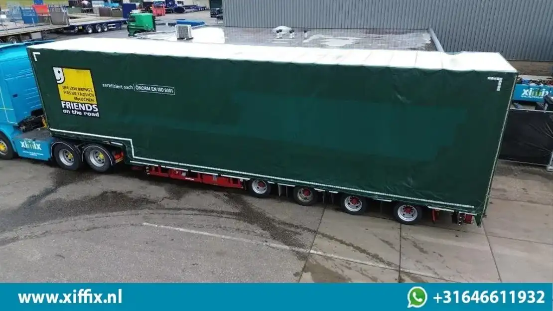 Opbouw: 4-ass. Uitschuifbare Semi-dieplader met huifopbouw // 2x naloop gestuurd